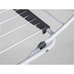 Zháňate stabilný sušiak, ktorý môžete kedykoľvek jednoducho preniesť ? Tak to je pre vás sušiak na bielizeň Travis značky Brilanz ako stvorený! Ponúkne vám hneď 20 metrov sušiacej plochy, takže bez obáv si naň zavesíte až 2 plné práčky vypranej bielizne. Je ideálny pre početnejšie rodiny . Veľká bielizeň už nebude nočnou morou, na výklopných bočných krídlach usušíte aj dlhšie kusy . Ďalším veľmi praktickým pomocníkom je držiak na sušenie ponožiek . Sušiak je tiež vybavený detským bezpečnostným zámkom , ktoré obmedzuje možnosť nechceného zloženia či pádu.