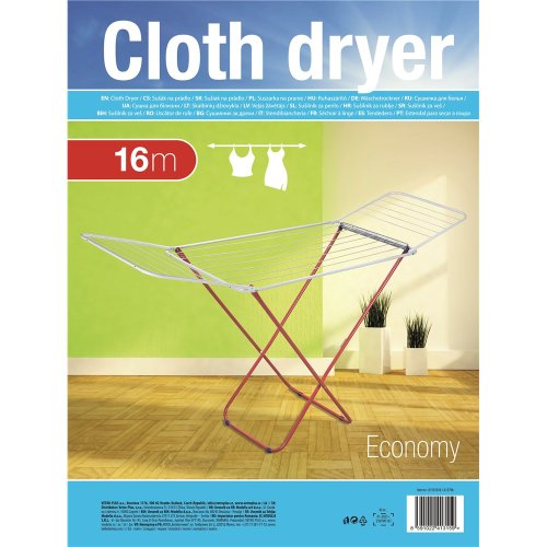 Stabilný prenosný sušiak na bielizeň ECONOMY ponúka 16 metrov sušiacej plochy. Bočné krídla sú vhodné na sušenie dlhšej bielizne.
