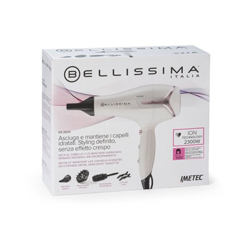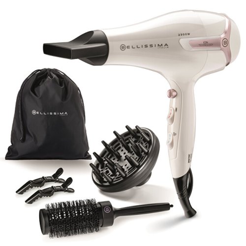 Fén na vlasy s výkonom 2300 W s iónovou technológiou udržuje vlhkosť vlasov a redukuje krepovatenie počas sušenia. Je vybavený koncentrátorom na presné sušenie a styling a tiež difuzérom, ktorý dodá objem a zvýrazní vlny. Ideálna voľba pre nepoddajné, krepovaté vlasy. Ponúka dve rýchlosti, tri teploty, studený vzduch pre fixáciu účesu, odnímateľný filter, závesné očko a kábel s dĺžkou 1,8 m. Presný nástavec koncentruje prúdenie vzduchu pre presné vysúšanie prameňov, ktoré tak zostávajú upravené a na svojom mieste. kučery, zároveň pomáha zvýrazniť ich tvar. Zaoblené konce prstov na difuzéri poskytujú jemnú masáž pokožky hlavy. Profesionálna okrúhla kefa s priemerom 42 mm slúži na tvarovanie účesu a je vybavená praktickým nástavcom pre oddelenie prameňov vlasov. Stylingové klipsy pomáhajú oddeliť vlasy pri fénovaní a uľahčujú styling.