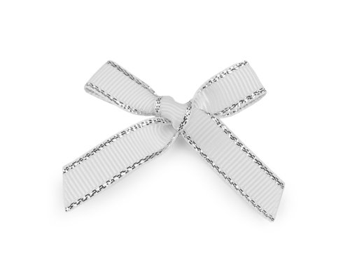 Svadobné mašličky využijete na výrobu voničiek aj rôznych dekorácií. Sú pevné, uviazané z obojstrannej rypsovej stuhy širokej 10 mm, ktorá je po bokoch pretkaná lurexom. Dodajú elegantný a žiarivý nádych svadobčanom, ale aj vašim iným tvorivým projektom. Oceníte ju aj ako skvelý detail na ozdobnom balení darčekov.
