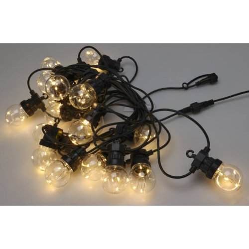 Elegantná svetelná reťaz s 20 guľami vyžarujúcimi teplé biele svetlo. Každá guľa obsahuje 5 mini LED diód na medenom drôtiku, ktoré vytvárajú príjemnú atmosféru pre interiér aj exteriér. Reťaz je pripojiteľná, vybavená časovačom a odolným transformátorom s ochranou IP44. Ideálne na vianočné dekorácie, terasy či záhradné posedenie.