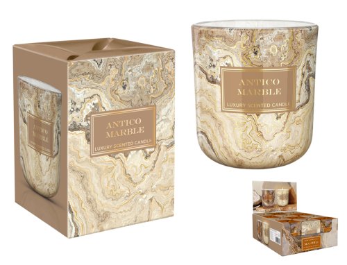 Elegantná vonná sviečka v mramorovom skle s hrejivou kvetinovo-drevitou vôňou bergamotu, jazmínu a pačuli so zamatovými tónmi vanilky a tonky. Kombinácia vytvára noblesný, ušľachtilý charakter s nádychom luxusu. Vosk: parafínový. Knôt: bavlnený. Doba horenia: 30 hodín. Hmotnosť náplne: 150 g.