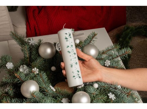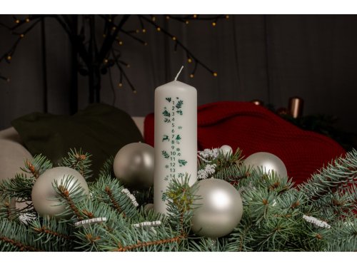 Sviečka 50x200 mm s kalendárom Vetvičky zelené