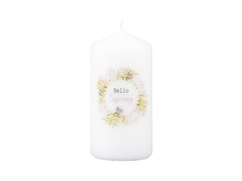 Sviečka 58x120 mm potlač jarný veniec, biela