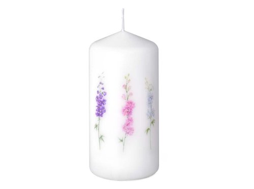 Sviečka 58x120 mm potlač kvety, biela