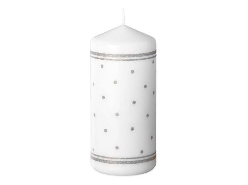 Sviečka 68x150 mm Bodky gliter strieborný, biela
