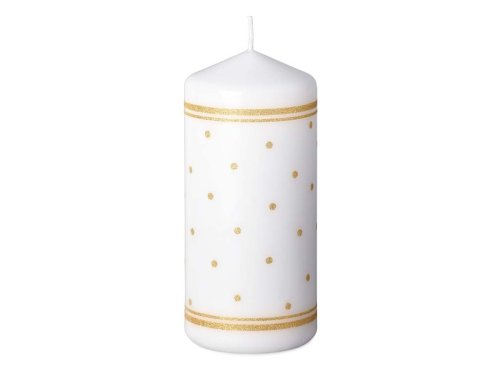 Sviečka 68x150 mm Bodky gliter zlatý, biela