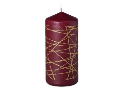 Sviečka 68x150 mm Glitrové čiary zlaté, bordó