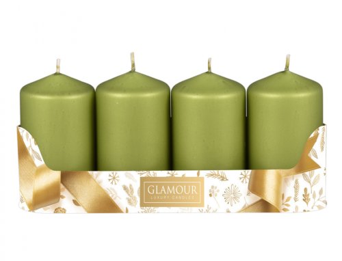 Súprava adventných sviečok so špicatou hlavou. Pôsobivé metalické farebné odtiene podčiarkuje matný povrch. Adventný veniec s nimi bude vyzerať atraktívne a moderne. Doba horenia: 14 hodín. Rozmery: priemer 5cm, výška 9cm. Obsah balenia: 4 ks sviečok. Farba: olivová.