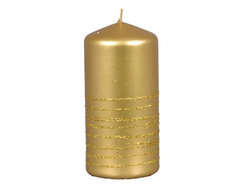 Sviečka v tvare valca. Má hladký, lesklý povrch zdobený jemnými trblietavými prúžkami. Jemne podčiarkne vianočné väzby a výzdobu. Doba horenia: 38 hodín. Rozmery: priemer 6 cm, výška 12 cm. Farba: červená.