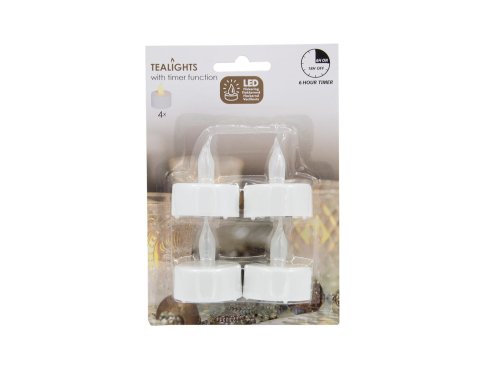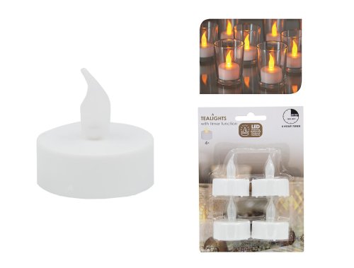 Sviečka čajová LED pr. 3,5 cm BÍ (4 ks) s batériami, časovačom.
