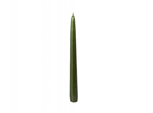 Lesklá kónická sviečka zelenej farby. Výška: 24 cm.