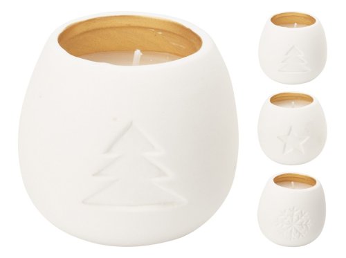 Sviečka porcelán 70x70x65mm stromček, hviezdička, vločka mix, biela