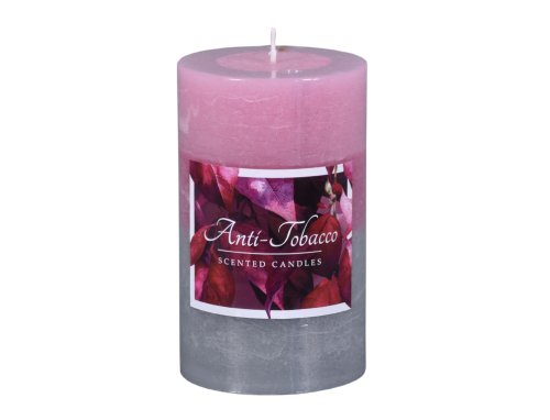 Dekoratívna rustikálna sviečka s vôňou Anti Tobacco prináša sviežu arómu, ktorá neutralizuje nežiaduce pachy a prevonia interiér čistou vôňou. Trojfarebné prevedenie s efektným prechodom tónov pôsobí elegantne a decentne. Vhodná na celoročné použitie aj ako doplnok dekorácií. Horí rovnomerne až 65 hodín. Rozmery: priemer 7 cm, výška 12 cm. Farba: ružovošedá.