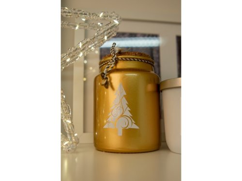 Sviečka v skle s korkovým viečkom s vôňou pomaranča a klinčeka