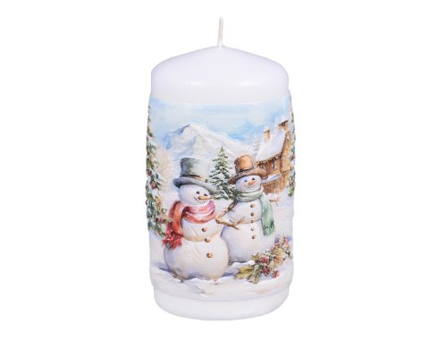 Sviečka SNEHULÁK VALEC zdobená vyrezávaná vonná d6x10cm