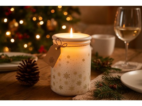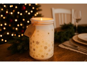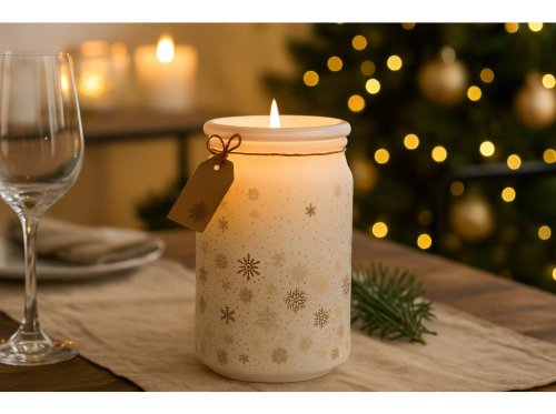 Sviečka so skleneným viečkom, Magic Snow, bielo-zlatá