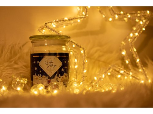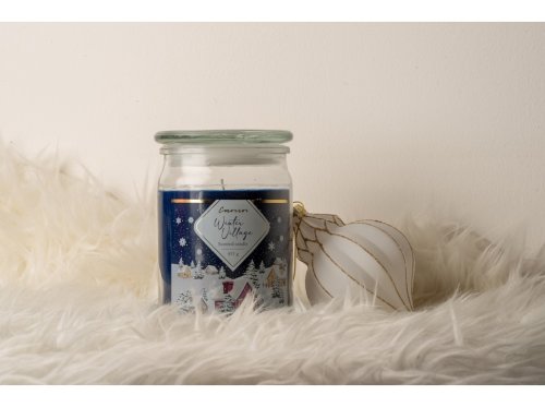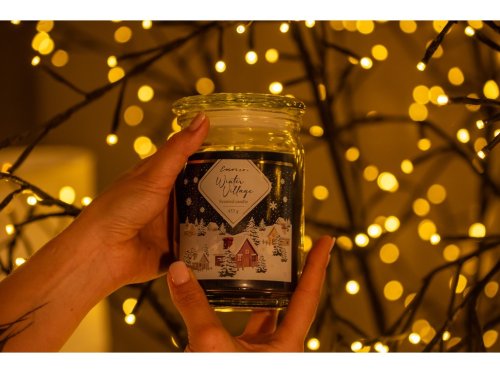 Sviečka v skle so skleneným viečkom s vôňou Winter Village