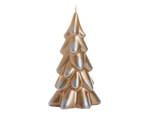 Vianočná sviečka v tvare stromčeka je vyrobená z kvalitného parafínu a slúži ako dekoratívny prvok s možnosťou zapálenia počas adventného obdobia. Povrch je matný, zdobený zlatým odtieňom so striebornými špičkami, ktoré zvýrazňujú slávnostný vzhľad a dodávajú sviečke elegantný lesk. Pôsobí štýlovo v interiéri, na sviatočne prestretom stole aj ako súčasť vianočnej dekorácie. Čas horenia: približne 16 hodín. Rozmery: priemer 8 cm, výška 15 cm. Farba: zlatá so striebornými špičkami.