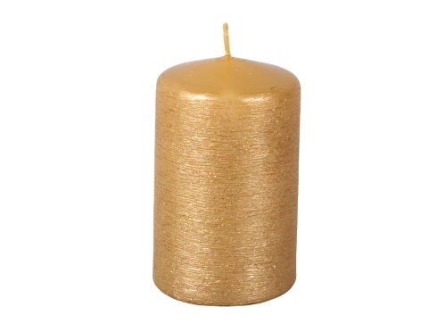 Škrabaná adventná sviečka s metalickým lesklým povrchom. Hlava je rovná, zaoblená. Dekoratívny vzhľad ozvláštni každý vianočný svietnik či dekoráciu. Priemer: 7 cm, výška: 12 cm. Doba horenia: 80 hodín. Farba: zlatá.