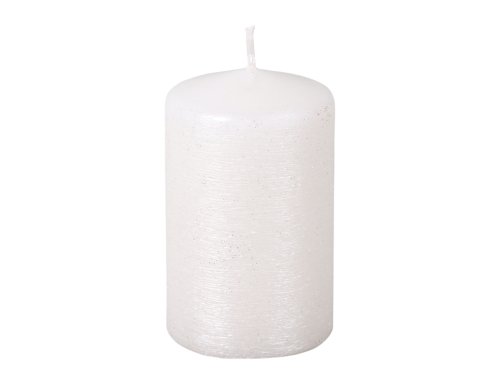Škrabaná adventná sviečka s metalickým lesklým povrchom. Hlava je rovná, zaoblená. Dekoratívny vzhľad ozvláštni každý vianočný svietnik či dekoráciu. Priemer: 7 cm, výška: 12 cm. Doba horenia: 80 hodín. Farba: biela.