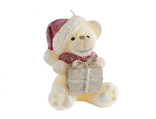 Figurálna sviečka stvárňujúca medvedíka s darčekom, je milý bytový doplnok dolaďujúci vianočnú atmosféru. V tlmených, moderných farbách. Doba horenia: 25h. Rozmery: výška 11cm. Farba: béžová.