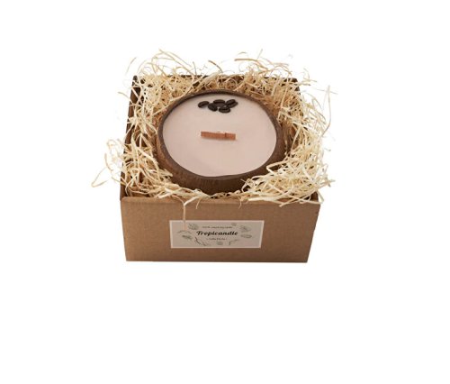 Sviečka z kokosu - vôňa Coffee Mocha - Sójové sviečky v kokosovej škrupine sú krásnou ozdobou a dekoráciou. Sviečky neobsahujú parafín, ktorý je vedľajším produktom ropného priemyslu. Spaľovaním parafínu sa do vzduchu uvoľňujú nebezpečné toxíny, ktoré potom vdychujeme. Sviečka obsahuje bavlnený knôt, teda čisto prírodný, bez obsahu bóraxu, do ktorého sa inak knôty namáčajú, aby sa umelo docielilo lepšie horenie. Do vosku pridávame iba kvalitné esenciálne oleje z lokálnych zdrojov. Sviečky sú odlievané a zdobené ručne. Každá sa teda od seba trochu líši. Sójový vosk horí približne dvakrát dlhšie, než ten parafínový, pri 100g vosku je to +- 20 hodín.