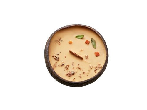 Sviečka v kokose - Sójové sviečky v kokosovej škrupine sú krásnou ozdobou a dekoráciou. Santalové drevo prináša upokojujúci a uzemňujúci pocit, zatiaľ čo mandarínka dodáva ľahkosť a osviežujúcu sladkosť. Sviečky neobsahujú parafín, ktorý je vedľajším produktom ropného priemyslu. Spaľovaním parafínu sa do vzduchu uvoľňujú nebezpečné toxíny, ktoré potom vdychujeme. Sviečka obsahuje bavlnený knôt, teda čisto prírodný, bez obsahu bóraxu, do ktorého sa inak knôty namáčajú, aby sa umelo docielilo lepšie horenie. Do vosku sú pridané iba kvalitné esenciálne oleje z lokálnych zdrojov. Sviečky sú odlievané a zdobené ručne. Každá sa teda od seba trochu líši. Sójový vosk horí približne dvakrát dlhšie, ako ten parafínový, pri 100 g vosku je to +- 20 hodín.