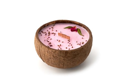 Sviečka z kokosu - vôňa Slivka, ruža & pačula - Sójové sviečky v kokosovej škrupine sú krásnou ozdobou a dekoráciou. Sviečky neobsahujú parafín, ktorý je vedľajším produktom ropného priemyslu. Spaľovaním parafínu sa do vzduchu uvoľňujú nebezpečné toxíny, ktoré potom vdychujeme. Sviečka má drevený knôt, teda čisto prírodný, bez obsahu bóraxu, do ktorého sa inak bavlnené knôty namáčajú, aby sa umelo docielilo lepšieho horenia. Do vosku pridávame iba kvalitné esenciálne oleje z lokálnych zdrojov. Sviečky sú odlievané a zdobené ručne. Každá sa teda od seba trochu líši. Sójový vosk horí približne dvakrát dlhšie, než ten parafínový, pri 100g vosku je to +- 20 hodín.