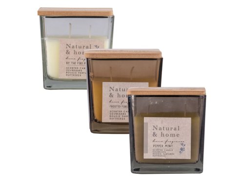 Vonná sviečka v sklenenej nádobe s rozmermi 100×100 mm s elegantným dreveným viečkom v dizajne Natural Home. Po zapálení prevonia interiér príjemnou vôňou a vytvorí útulnú atmosféru. Vhodná ako dekorácia aj darček. Dostupná v mixe vôní a farieb. Tovar je dodávaný v mixe. Doručovaný tovar je vyberaný náhodne a nie je možné vybrať konkrétne prevedenie.