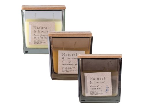 Vonná sviečka v sklenenej nádobe s rozmermi 120×120 mm s prírodným dreveným viečkom v dizajne Natural Home. Po zapálení prevonia priestor príjemnými vôňami a dodá interiéru hrejivú atmosféru. Štýlové prevedenie z nej robí krásny doplnok aj vhodný darček. Ponúkaná v mixe vôní a farieb. Tovar je dodávaný v mixe. Doručovaný tovar je vyberaný náhodne a nie je možné vybrať konkrétne prevedenie.