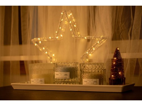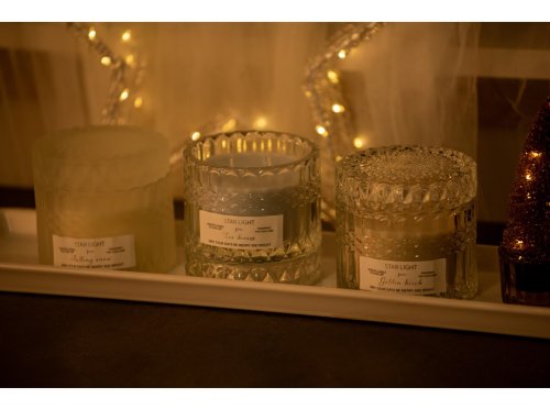 Sviečka v skle 90x90x85mm 2 knôty vonná so skleneným viečkom, číra, biela, šedá