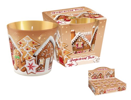 Vonná sviečka zo sójového vosku v dekoratívnom skle s vianočnou potlačou a darčekovým papierovým prebalom. Vôňa perníka s tónmi vanilky a škorice vytvára príjemnú sviatočnú atmosféru. Teplé svetlo sviečky umocňuje zlatistý vnútorný povrch skla, ktorý pôsobí elegantne aj po dohorení. Doba horenia: 30 hodín. Rozmery: priemer 9 cm, výška 8,5 cm. Hmotnosť vosku: 115 g. Farba: béžovo-zlatá.