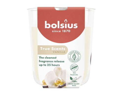 Vonná sviečka v skle. Sklenená nádoba má silné dno a pôsobí veľmi elegantne. Vonia krémovo, po vanilke. Sviečka z kolekcie True scents kombinuje ikonické vône s prírodnými výťažkami. Obsahuje prírodný vegánsky vosk a neobsahuje palmový olej. Vďaka pletenému bavlnenému knôtu má sviečka stabilný plameň a nefajčí. Doba horenia: 24 hodín. Rozmery: priemer 7 cm, výška 8 cm. Farba: béžová.