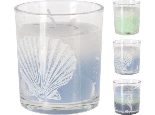 Vonná sviečka v skle o rozmere 70×75 mm s dekoratívnym viacfarebným vrstveným voskom a motívmi inšpirovanými letom. Farebné prevedenie je dodávané v mixe, jednotlivé kusy sa môžu líšiť kombináciou farieb aj designom.