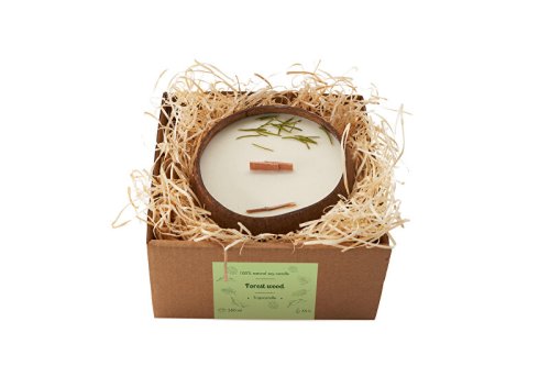 Sviečka z kokosu - Vôňa lesa - Sójové sviečky v kokosovej škrupine sú krásnou ozdobou a dekoráciou. Sviečky neobsahujú parafín, ktorý je vedľajším produktom ropného priemyslu. Spaľovaním parafínu sa do vzduchu uvoľňujú nebezpečné toxíny, ktoré potom vdychujeme. Sviečka obsahuje bavlnený knôt, teda čisto prírodný, bez obsahu bóraxu, do ktorého sa inak knôty namáčajú, aby sa umelo docielilo lepšie horenie. Do vosku pridávame iba kvalitné esenciálne oleje z lokálnych zdrojov. Sviečky sú odlievané a zdobené ručne. Každá sa teda od seba trochu líši. Sójový vosk horí približne dvakrát dlhšie ako ten parafínový, pri 100 g vosku je to +- 20 hodín.
