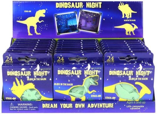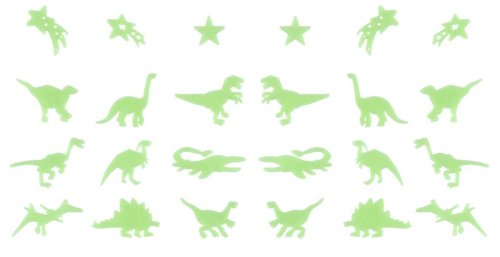 Plastové dekorácie na stenu skrášli izbu každého milovníka pravekých dinosaurov. Sada obsahuje 24 ks plastových dinosaurov, ktoré po nasvietení svietia.
