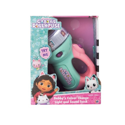 Toto interaktívne svietidlo s kolieskom, ktoré umožňuje prepínanie medzi šiestimi jasnými farbami, prináša veľa zábavy pre najmenších. Svietidlo nielenže vydáva zvuky zo seriálu, ale funguje aj ako skutočné svietidlo, ktoré ponúka stále svetlo aj blikajúce nastavenie. Deti sa môžu učiť farby s Gabby a zároveň si užívať zvukové efekty, ktoré pridávajú na zážitku. S rozmermi 15 cm x 10 cm je ideálny pre malé ruky. Batérie (3 x AAA) sú súčasťou balenia. Vhodné pre deti od 12 mesiacov. Perfektný darček pre malých fanúšikov Gábin kúzelný domček!