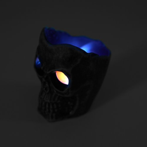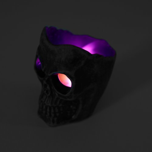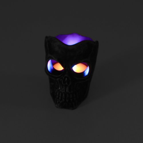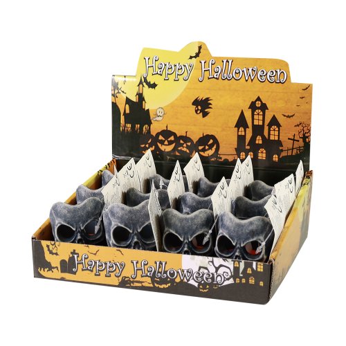 Halloweenské svietidlo v tvare lebky je ideálny doplnok na tú pravú Halloween párty! Plastová mini lampička vo veľkosti 7 cm je funkčná na 3 batérie typu LR1130 (batérie sú súčasťou balenia). Stačí len prepnúť prepínač v spodnej časti. Lampička po zapnutí bliká rôznymi farbami, ktoré sa samy prepínajú. Veľkosť lampičky je cca 7 cm.