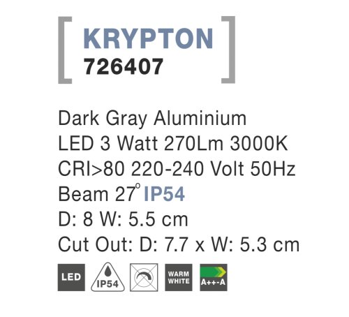 Nástenné svietidlo Nova Luce KRYPTON R STEP GREY 2 bolo navrhnuté špeciálne na osvetlenie vonkajšieho schodiska, ale využitie nájde aj na terase či záhrade. Preto spolu s ním získate ochranné krytie IP54 proti prírodným vplyvom. Je teda vodeodolné a nevadí mu ani prach . Futuristický dizajn upúta vašu pozornosť aj v prostredí vášho domu či moderného bytu. Vaše oči sa od neho neodtrhnú vďaka jeho spracovaniu z vysoko kvalitného hliníka , takže vám bude dlho a hlavne spoľahlivo slúžiť.