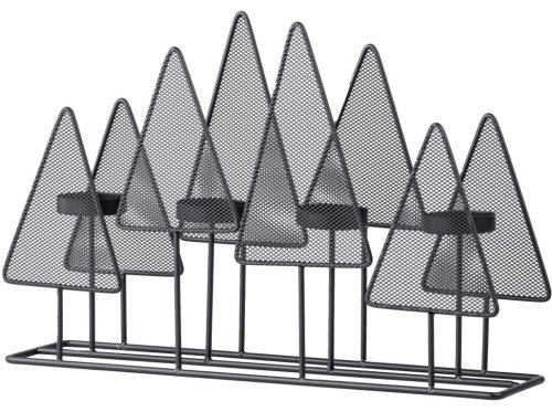 Kovový svietnik v tvare stromčeka o rozmere 380 × 90 × 250 mm pojme 4 čajové sviečky. Elegantné čierne prevedenie vytvára slávnostnú a modernú atmosféru. Stabilná konštrukcia zaisťuje bezpečné umiestnenie sviečok a dekoratívny efekt, vhodný pre stolný aranžmán alebo samostatnú výzdobu.