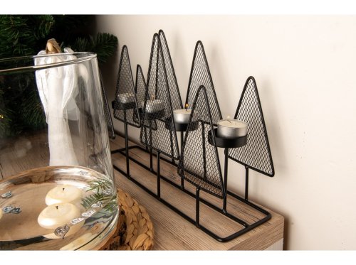 Svietnik kov 380x90x250mm adv. stromček na 4 ks čaj. sviečok, čierna