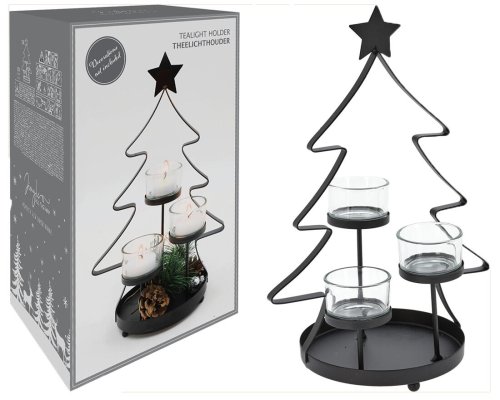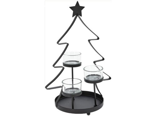 rozmery: 29 x 18 x 13 cm materiál: čierny oceľový drôt + sklenené misky na čajové sviečky farba: čierna, číre sklo