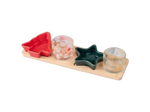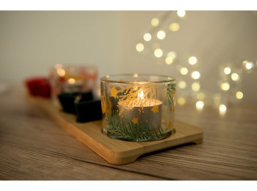 Svietnik sklo 5ks set 330x60x125mm adv. na bambus. tácky, farebná
