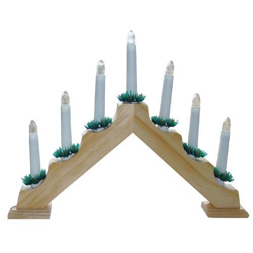 materiál: drevo napájanie: 220 V farba: prírodná 7 sviečok farba svetla: 2700 - 3000 K (teplá biela)
