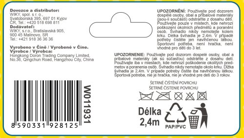 Švihadlo - ideálna pomôcka pri cvičení! Doprajte sebe aj deťom trochu pohybu a užite si spoločne zábavu pri cvičení. Švihadlo má drevenú ergonomickú rukoväť pre lepšie držanie. Dĺžka: 240 cm Rozmery balenia 12 x 24 x 3 cm.
