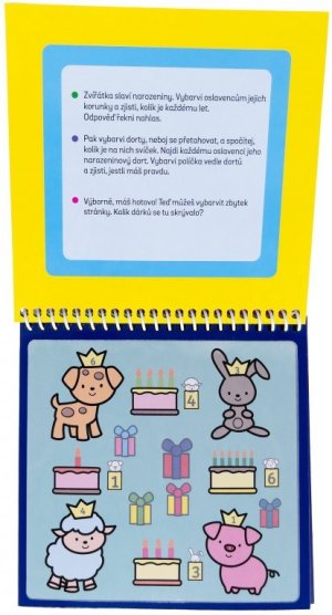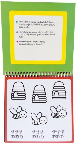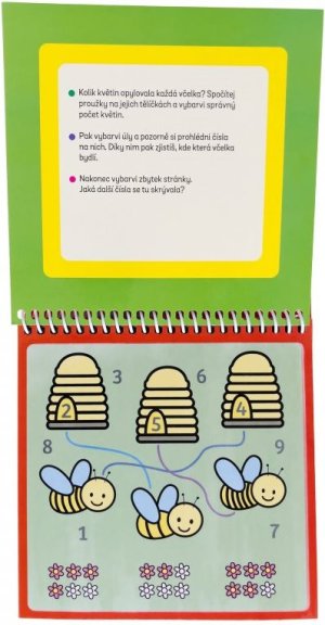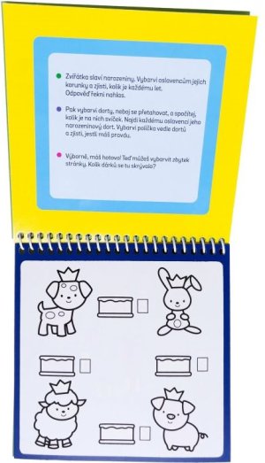 Na stránkach ťa čakajú úlohy na precvičovanie čísel, ale aj počítanie. Dokážeš spočítať, koľko motýľov sa schováva na stránke? Dokážeš pomenovať všetky farby a poznáš, čo sa skrýva v obrázku plnom čísel? Akonáhle voda uschne, farby zmiznú a ty môžeš vyfarbovať a riešiť úlohy stále dookola.