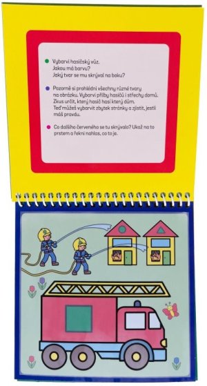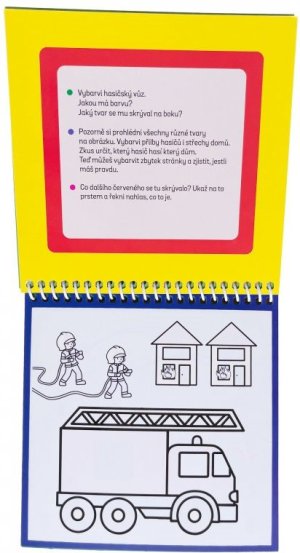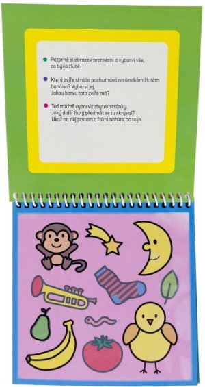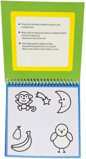 Na stránkach ťa čakajú úlohy na precvičovanie tvarov a farieb. Dokážeš vyfarbiť jednotlivé tvary na stránke? Dokážeš pomenovať všetky farby a poznáš, čo sa skrýva v obrázku plnom tvarov? Akonáhle voda uschne, farby zmiznú a ty môžeš vyfarbovať a riešiť úlohy stále dookola.