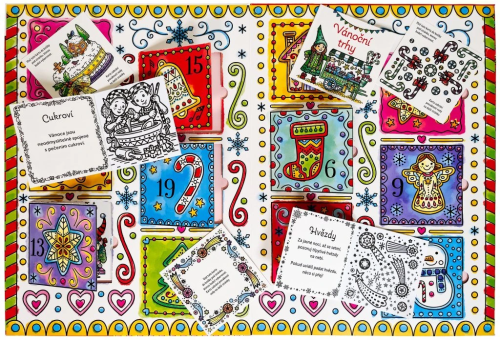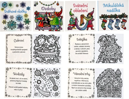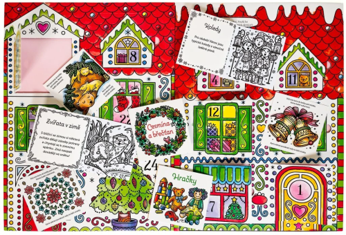 Vnútri nájdete celkom 24 knižiek s čiernobielymi obrázkami. Biele časti sa dajú veľmi ľahko vyfarbiť - stačí namočiť štetec, ktorý je súčasťou kalendára, do vody a farba sa ako zázrakom na bielom podklade objaví. Súčasťou každej knižky je aj karta zabraňujúca presiaknutiu vody. 24 knižiek prináša 24 rôznych adventných a vianočných tém, o ktorých si môžete spoločne rozprávať. Počet strán: 24 kníh x 8 Väzba: Brošňa. Rok vydania: 2024 ISBN: 978-80-256-3612-1