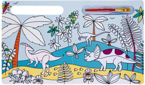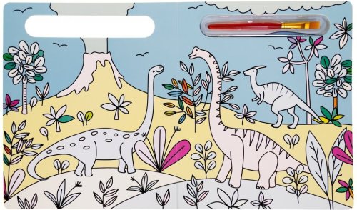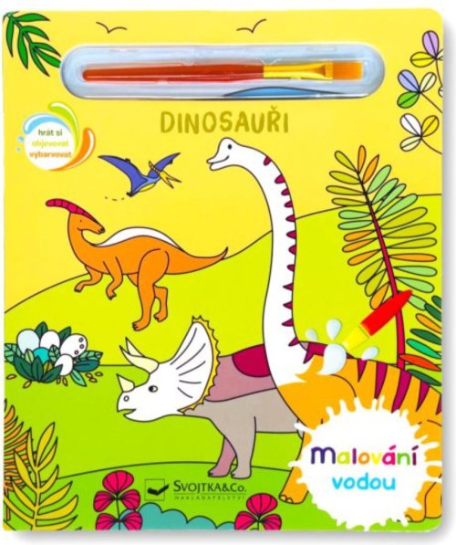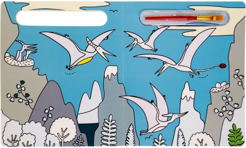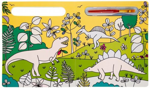 Knižka s pevnými stránkami je plná obrázkov dinosaurov, ktoré sú čiastočne farebné. Biele časti sa dajú veľmi ľahko vyfarbiť - stačí namočiť štetec, ktorý je súčasťou knihy, do vody a farba sa ako zázrakom na bielom podklade objaví.